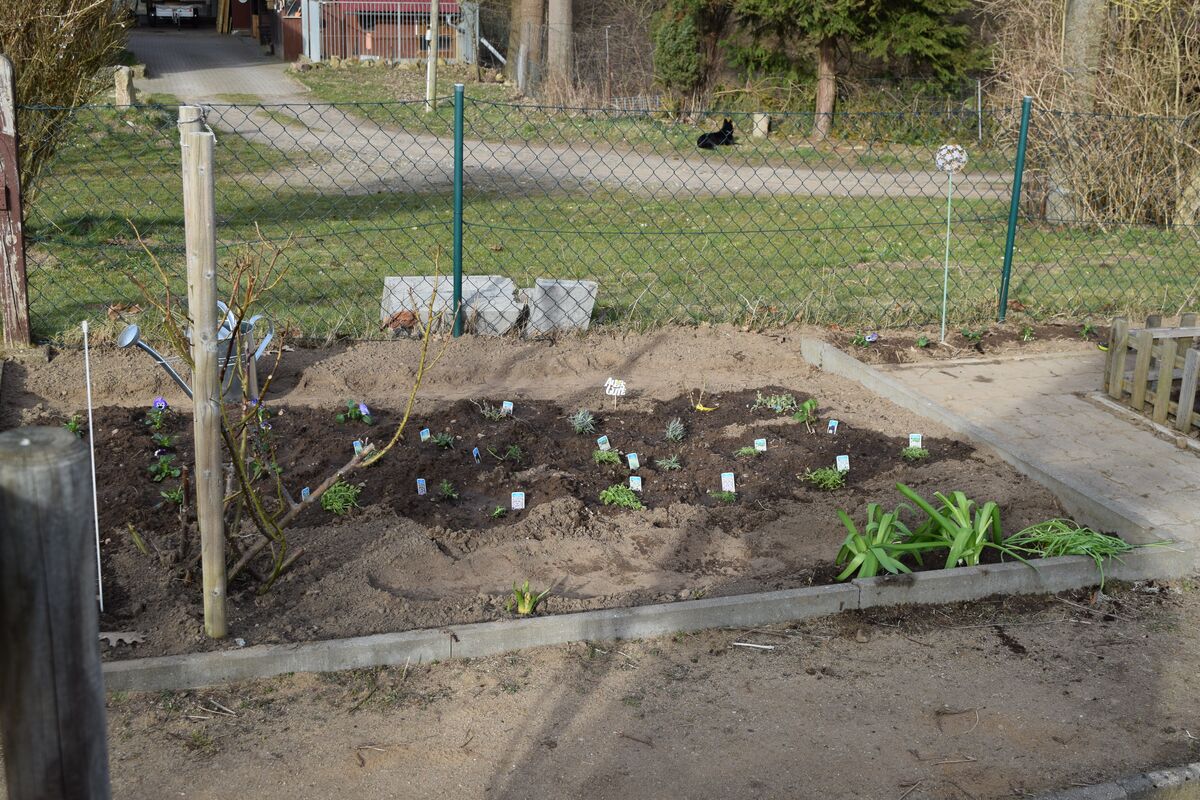 Schon Dienstag und ich komme mit dem Schreiben nicht hinterher. Am Wochenende haben wir das erste Motivblumenbeet angelegt. Es heißt: Bienenfreund. Allerdings haben die Bienen jetzt erstmal nur was von den Stiefmütterchen die schon Blüten haben.