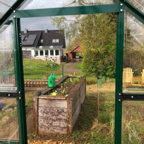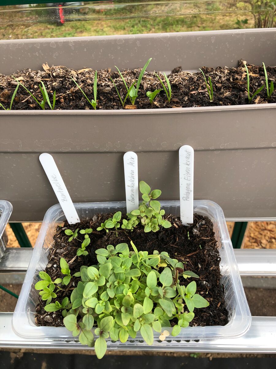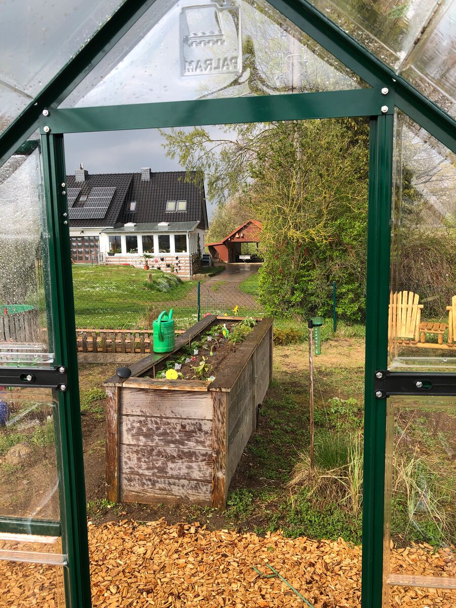 Doch das Gewächshaus ist nun gut bestückt, mit Paprika, Tomaten, Spinat in Kästen, Basilikum, Bohnenkraut, Koriander und Blumen in Anzuchtschalen halten mich in Bewegung. Gestern wurde ich spontan von einem Graupelschauer überrascht, als ich in meinem Gewächshaus war. Man war das laut, da möchte man keine Pflanze sein und freut sich, das man Beine machen kann.