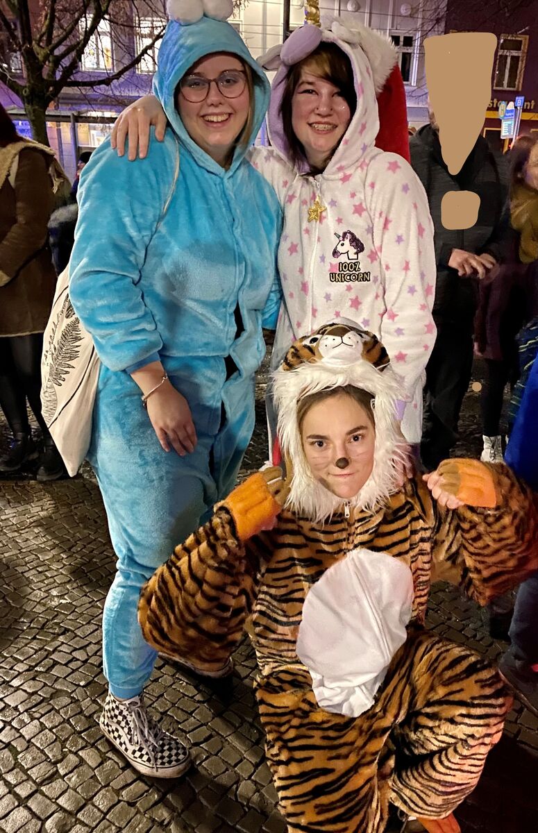 Da ich von Natur neugierig bin, habe ich die drei einfach gefragt. Alle bestätigten mir, dass sie ganz bewußt zu dieser Demo gekommen sind und dass sie ebenfalls ganz bewußt die Kostümierung gewählt haben. Sie möchten ihrer Meinung zur Impflicht etwas leichtes mitgeben und so anderen Mut machen, die Freude und das Lachen nicht zu verlernen. Das haben sie gut gemacht und nicht nur die vielen Kinder hatten ihre Freude. Danke Mädels.